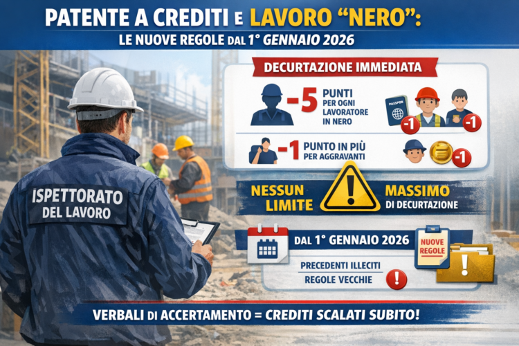 Patente a crediti: nuove decurtazioni per lavoro “nero” dal 1° gennaio 2026